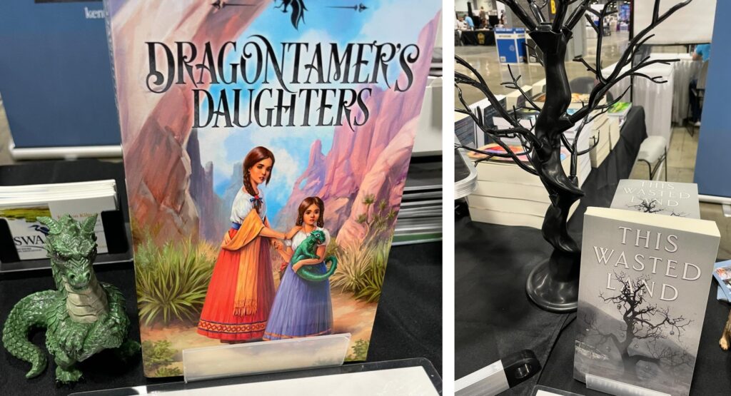 I brought more titles. In 2022, I had only tried to sell my four YA sci-fi/fantasy novels: Dragontamer’s Daughters; Lost Dogs; Stray Cats; and This Wasted Land. At that time, I only had published one kids book (Our Wild Place), so I didn’t bother packing it.