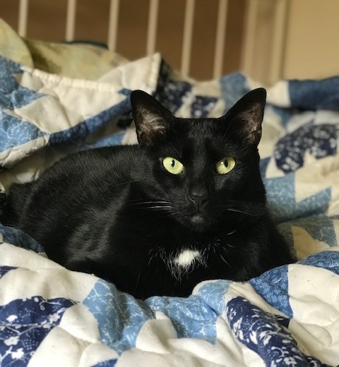 The main character of Stray Cats is “Pimmi,” a female black cat who is note-for-note our Pimienta. We adopted her as an 8-week old kitten from a local animal shelter, and she’s the only one of the dozens of pets we’ve had over the years whose birthday we know: March 17, 2014.